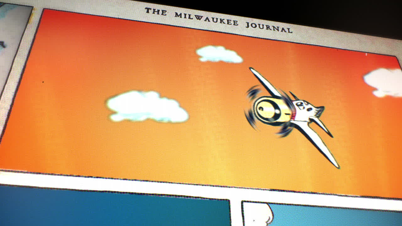 The concept: a single comic page where every panel comes to life. The camera flies from frame to frame, through a world hand-traced, rebuilt, and animated in three-dimensional space. Original comic panels were manually redrawn in After Effects and Photoshop, then reconstructed in 3D, early aircraft, characters, and environments animated within the panels as if the page itself had come alive.